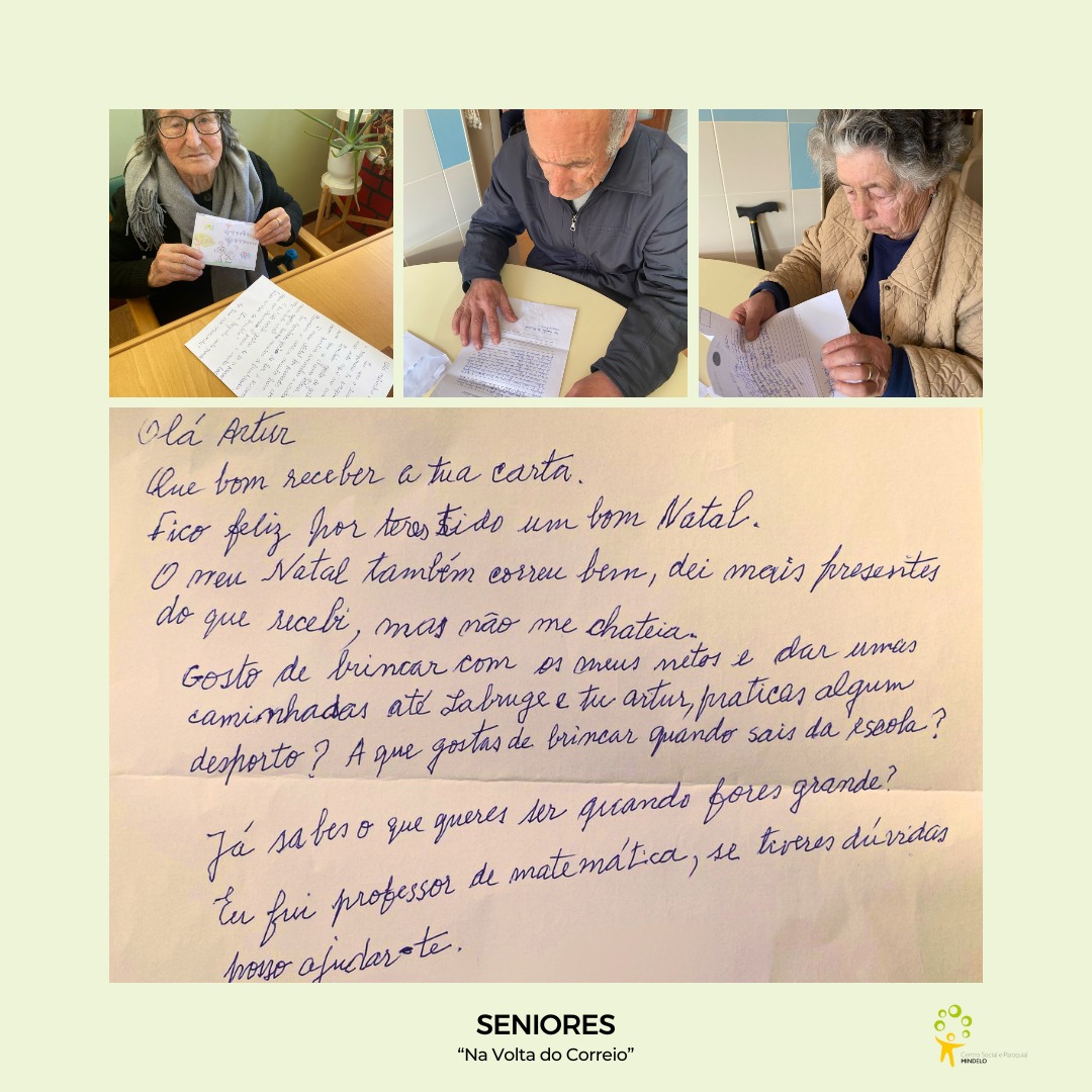 Os utentes do 𝑪𝒆𝒏𝒕𝒓𝒐 𝒅𝒆 𝑫𝒊𝒂 mergulharam com entusiasmo na escrita de cartas para as crianças do 2.º ano da Escola das Caxinas, partilhando memórias, experiências e carinho. Em troca, receberam mensagens repletas de curiosidade e alegria. ![]()